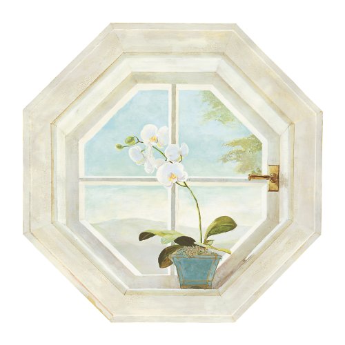 A lovely orchid graces the windowsill on this linen white octagon trompe d'oiel window mural. Picture the setting: it's a Sunday afternoon in your beach house and all of your tasks are done for the day. It's time to enjoy both the view and the beautiful orchid, right from the comfort of your home. Made in the USA.