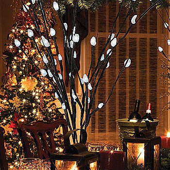 - Set of three branches, Each individual light branch has 12 sparkling LED lights