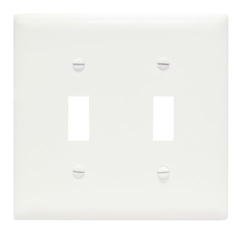 White, 2 Gang, 2 Toggle Openings, Nylon Wall Plate, UL, CSA, 3/16" Taller & Wider That Standard Size Wall Plate For Better Coverage, Molded Of Rugged Practically Indestructible Self Extinguishing Nylon, 4.75" x 4.6875", Cello Wrap.