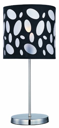 This contemporary table lamp in satin nickel finish with a black modern shade is a fun addition to your home. It has an on/off switch and uses one 60-Watt capacity or CFL13 bulb. It is UL listed. Bulb is not included.
