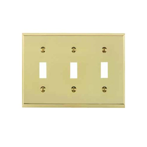 4770.030.CD Finish: Polished Brass Shown in Satin Nickel Features: -Triple toggle switch plate.-Classic square bevel design.-Beveled edge. Color/Finish: -Polished brass finish.-Venetian bronze finish.-Satin nickel finish.-Polished chrome finish. Dimensions: -Overall dimensions: 4.5'' H x 6.5'' W.
