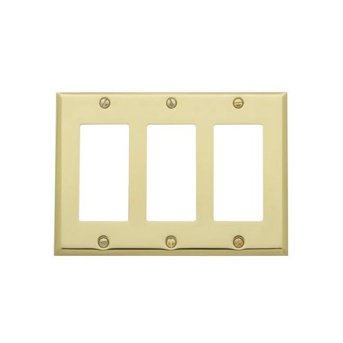 4740.030.CD Finish: Polished Brass Shown in Polished Brass Features: -Triple GFCI switch plate.-Classic square bevel design.-Beveled edge. Color/Finish: -Polished brass finish.-Venetian bronze finish.-Satin nickel finish. Dimensions: -Overall dimensions: 4.25'' H x 6.5'' W.
