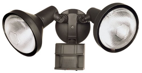 Heath Zenith's SL-5412 bundles a motion sensor and a two-light floodlight in a single package. Unlike most motion-activated security lights, this one features "pulse count" technology that reduces the number of times that lamps are triggered due to wind and rain. The sensor has a range of up to 70 feet and includes a selectable light timer that allows you to determine the amount of time the lights stay on after motion stops. If you want to turn the lamp off or on for extended periods, the lamp includes a manual override that lets you control illumination via an existing indoor switch. This product is Energy-Star compliant with 120-watt bulbs but may be used with bulbs of up to 300 watts (bulbs not included). For the same floodlight with a white finish, see Heath Zenith product #SL-5412-WH-A.--Josh Dettweiler
