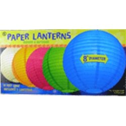 Add big color to your party lighting. Large Paper Lantern Electric Light Set features a 120V AC string of 5 steady burn lights with 8in diameter paper lined lantern globes in bright seasonal hues. End-to-end plugs accommodate multiple strands of lights (other light sets sold separately) plus 4 extra bulbs included. UL approved for indoor/outdoor use. Light set measures 11-feet long with 9-feet total lighted length.